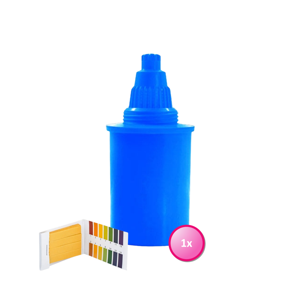 De AlkaKan wordt standaard, inclusief 1 filterpatroon en gratis pH-testpapier, geleverd.