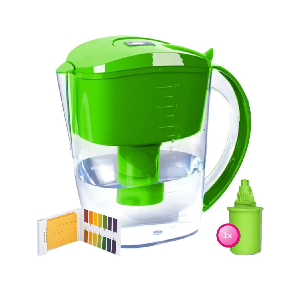 De Alkaline WaterFilter Kan Groen – AlkaKan voor alkalisch/ basisch water | met GRATIS pH-testpapier